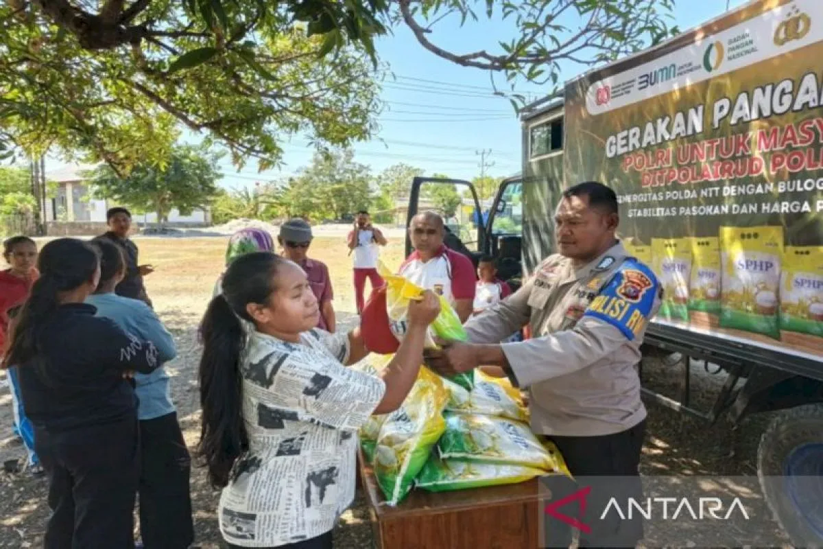 Kupang (ANTARA) - Ditpolairud Polda Nusa Tenggara Timur (NTT) menjual dua ton beras melalui gerakan pangan murah dalam rangka menyambut HUT ke 80 RI di Desa Bolok Kecamatan Kupang Barat, Kabupaten Kupang.