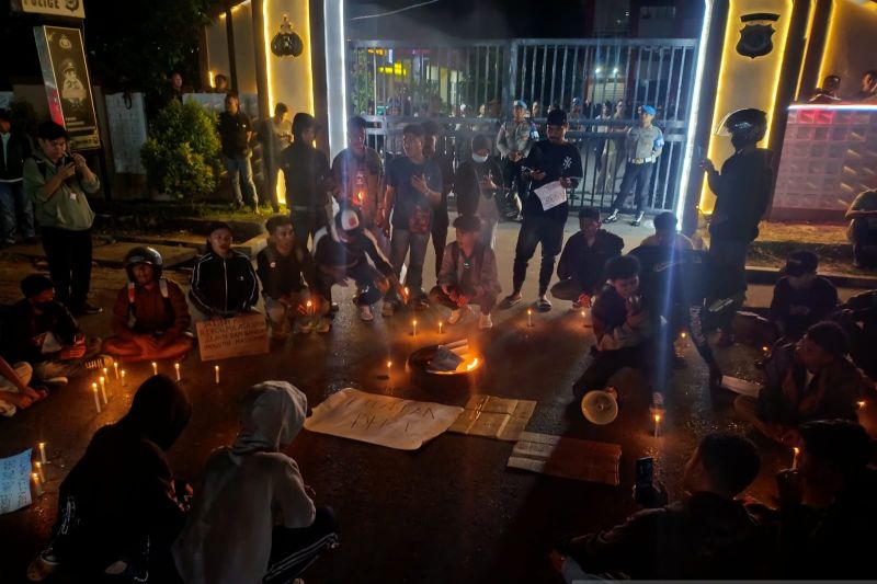 Dalam aksi tersebut selain menggelar orasi di depan Polda NTT, para pengunjuk rasa juga membakar ban serta menyalakan lilin di depan pintu gerbang Polda NTT