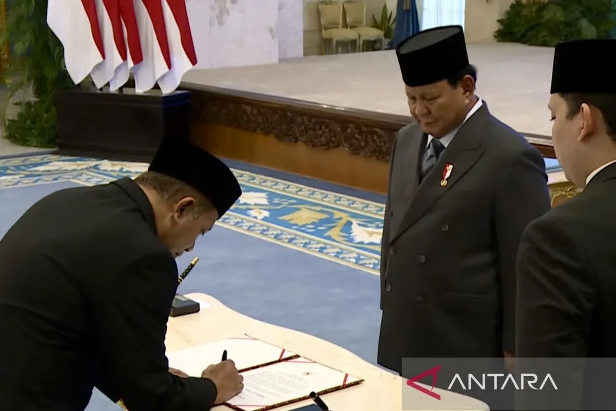 Presiden Prabowo Subianto dalam acara pelantikan menteri dan wakil menteri baru Kabinet Merah Putih di Istana Negara Jakarta, Senin, melantik Ferry Joko Juliantono sebagai Menteri Koperasi (Menkop) menggantikan pejabat sebelumnya, Budi Arie Setiadi.