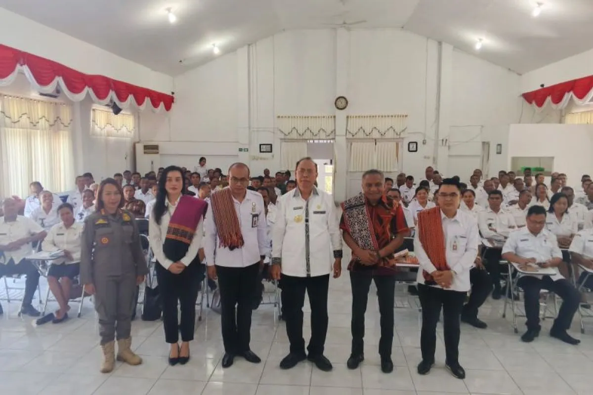 Turut hadir dalam kegiatan tersebut, Kepala Divisi Peraturan Perundang-undangan dan Pembinaan Hukum Kanwil Kemenkum NTT, Ketua dan Anggota Tim Kerja Percepatan Pembentukan Posbakum Desa/Kelurahan, para Kepala OPD Kabupaten Malaka, para camat, serta 127 Kepala Desa se-Kabupaten Malaka.