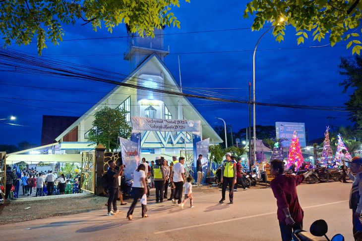 Kupang, NTT (ANTARA) - Perayaan Misa Malam Natal 2025 di wilayah Kota Kupang, Nusa Tenggara Timur (NTT) untuk merayakan ibadah mengenang kelahiran Yesus Kristus Sang Juru Selamat berjalan secara khidmat dan tertib pada Rabu.