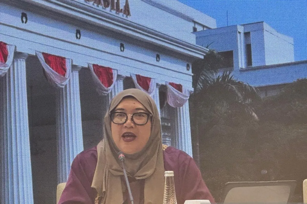 Direktur Hak Asasi Manusia dan Migrasi Kementerian Luar Negeri (Kemlu) RI Indah Nuria Savitri dalam taklimat media di Jakarta, Kamis (8/1/2026). (ANTARA/Cindy Frishanti)
