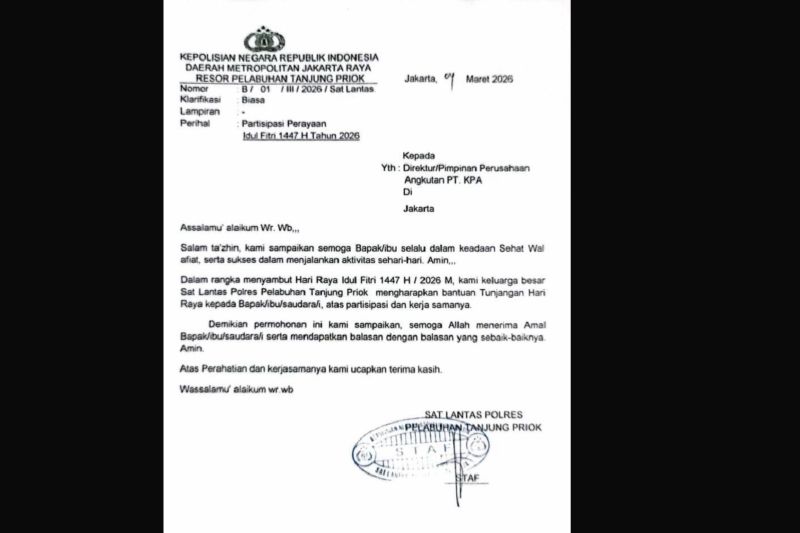Sebelumnya, beredar surat dengan kop surat Polres Pelabuhan Tanjung Priok dengan nomor B/01/III/2026/Sat Lantas perihal Partisipasi Perayaan Idul Fitri 1447 Hijriah/2026 kepada Direktur/Pimpinan Perusahaan Angkutan PT KPA tertanggal 4 Maret 2026.