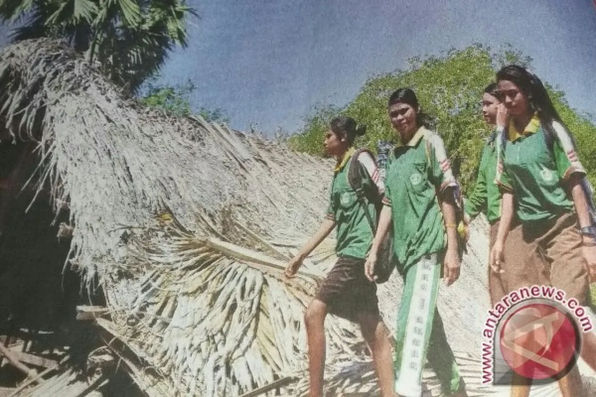 "Semua orangtua murid menyumbang kayu bulat untuk tiang bangunan serta pelepah untuk dinding dan daun lontar serta alang-alang untuk atap sekolah secara sukarela," kata Isak Amnifu.
